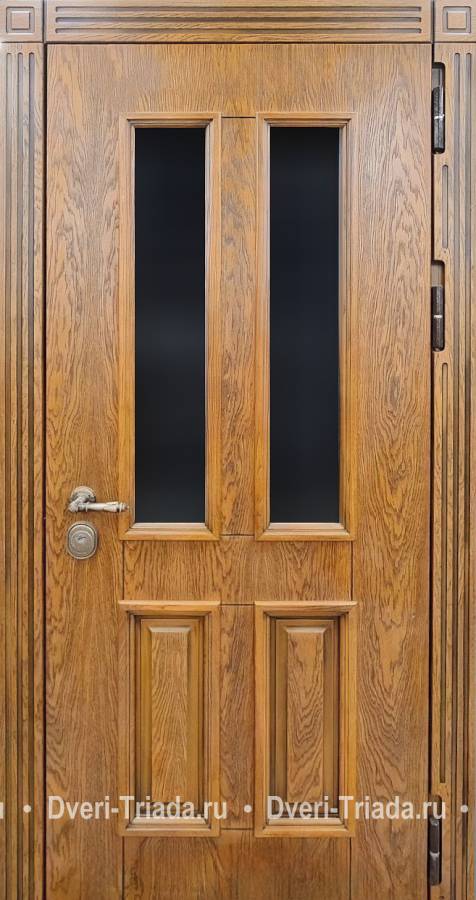 Остеклённая входная термодверь со шпонированными плитами МДФ с багетом Арт-491