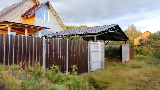 Навес из металлочерепицы двускатный для автомобиля Арт-649