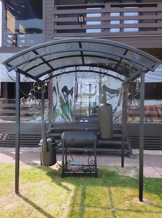 Арочный навес из поликарбоната с коваными элементами Арт-687