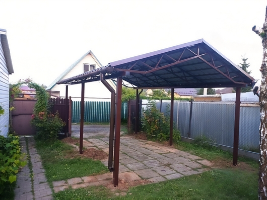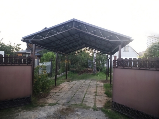 Двускатный навес для автомобиля с крышей из профнастила Арт-709